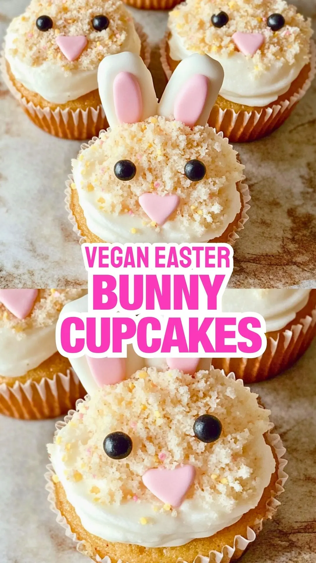 These Vegan Easter Bunny Cupcakes are super cute and fluffy! Made with love, they’re decorated to look like adorable bunnies that are perfect for your Easter celebrations.